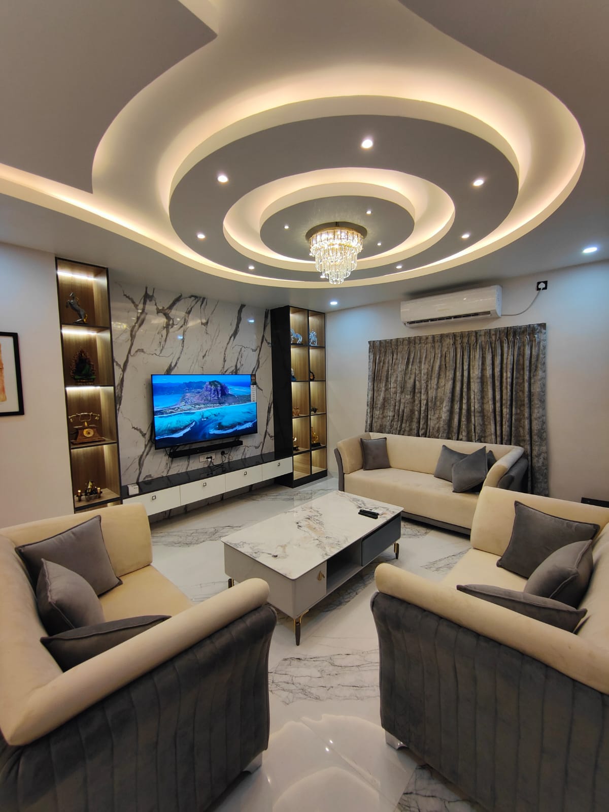 Versatility : Our false ceiling designs come in a variety of styles, materials, and finishes, allowing you to create a custom look that complements your decor and enhances the overall ambiance of your space.